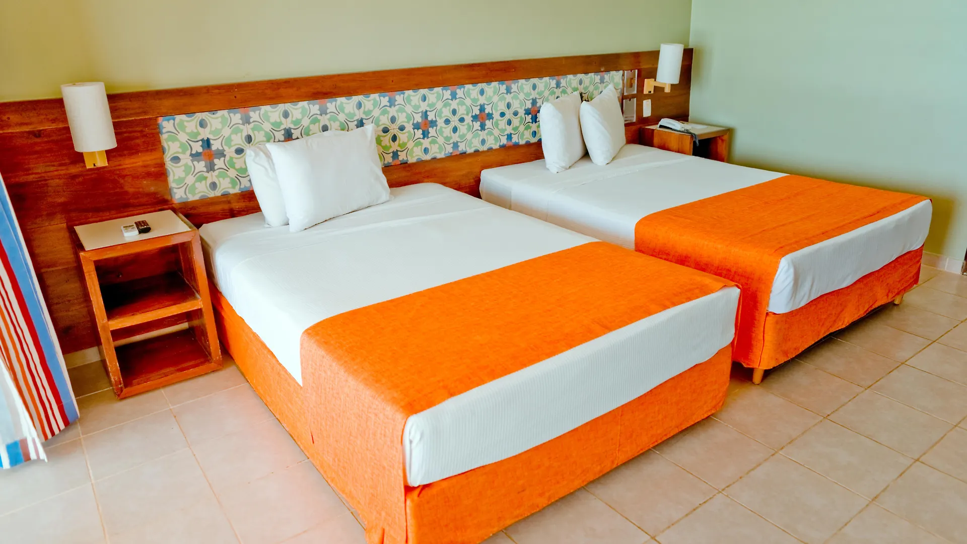 Os quartos incluem banheiros privados, o frigobar e o controle de temperatura, bem como vistas para o oceano.